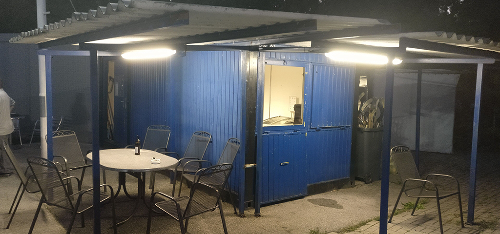 Nebenbei wurden von uns in den Containern Matten ausgelegt sowie das Dach und das Licht beim Buffetcontainer gemacht.